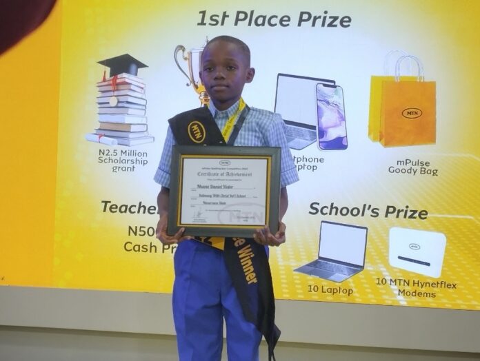 Daniel, a student of Intimacy with Christ International, Nasarawa, won the competition after spelling eight words correctly in a spell-off against 11-year-old Oluwadamilola Adeolu in the finale, which was held at the MTN Head Office in Ikoyi, Lagos.