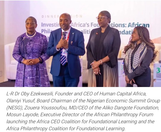 Human Capital Africa, the Nigerian Economic Summit Group, the Aliko Dangote Foundation and the African Philanthropy Forum unveiled the African CEOs’ Coalition for Foundational Learning and the Africa Philanthropy Coalition for Foundational Learning.